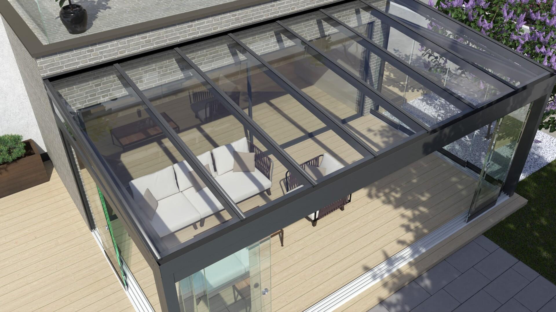 Ihr Terrassendach Premium Linie wird maßgenau produziert, um Ihren spezifischen Bedürfnissen gerecht zu werden. Gestalten Sie die Größe und Form Ihres Terrassendaches nach Ihren Wünschen, mit einer Neigung von 3 bis 15 Grad.